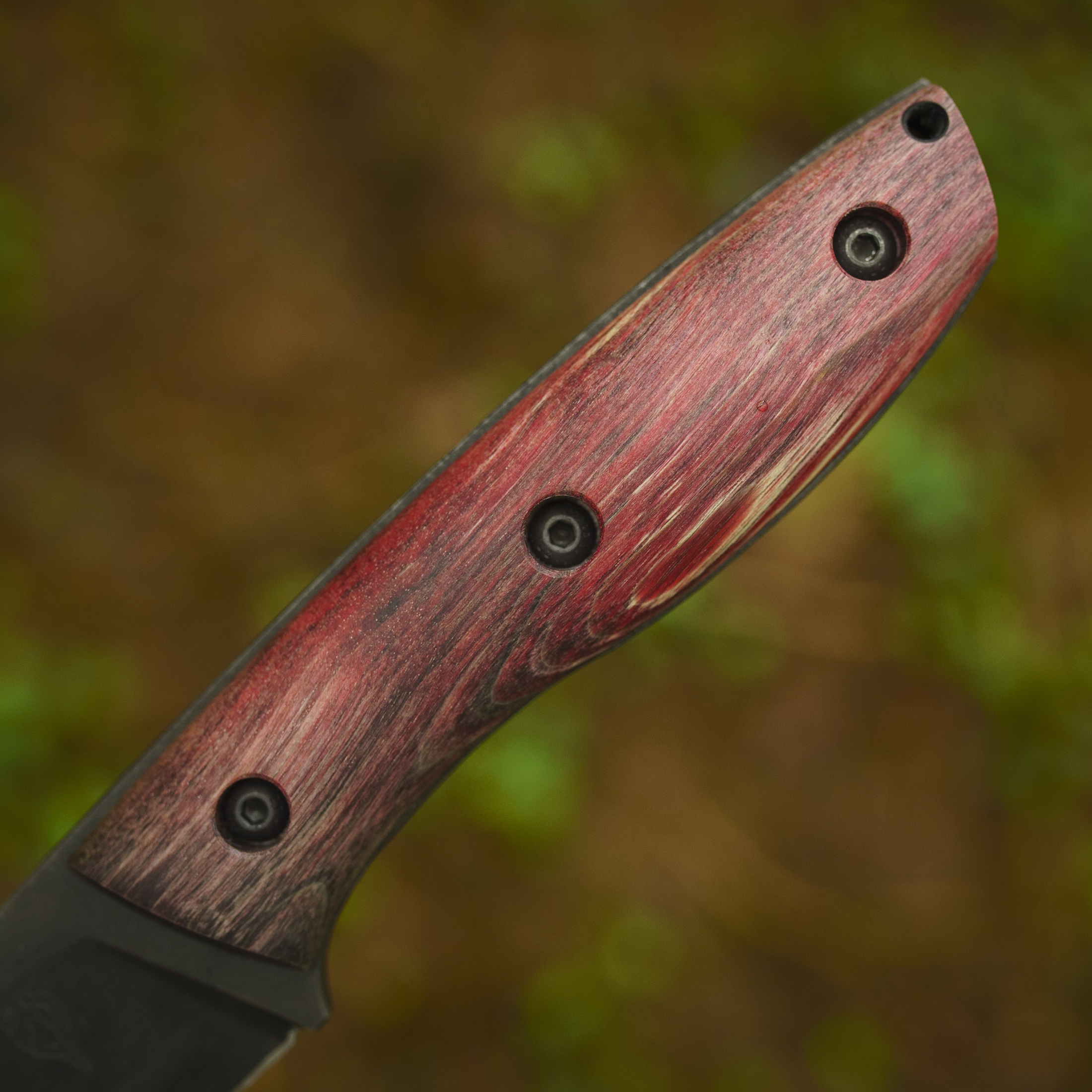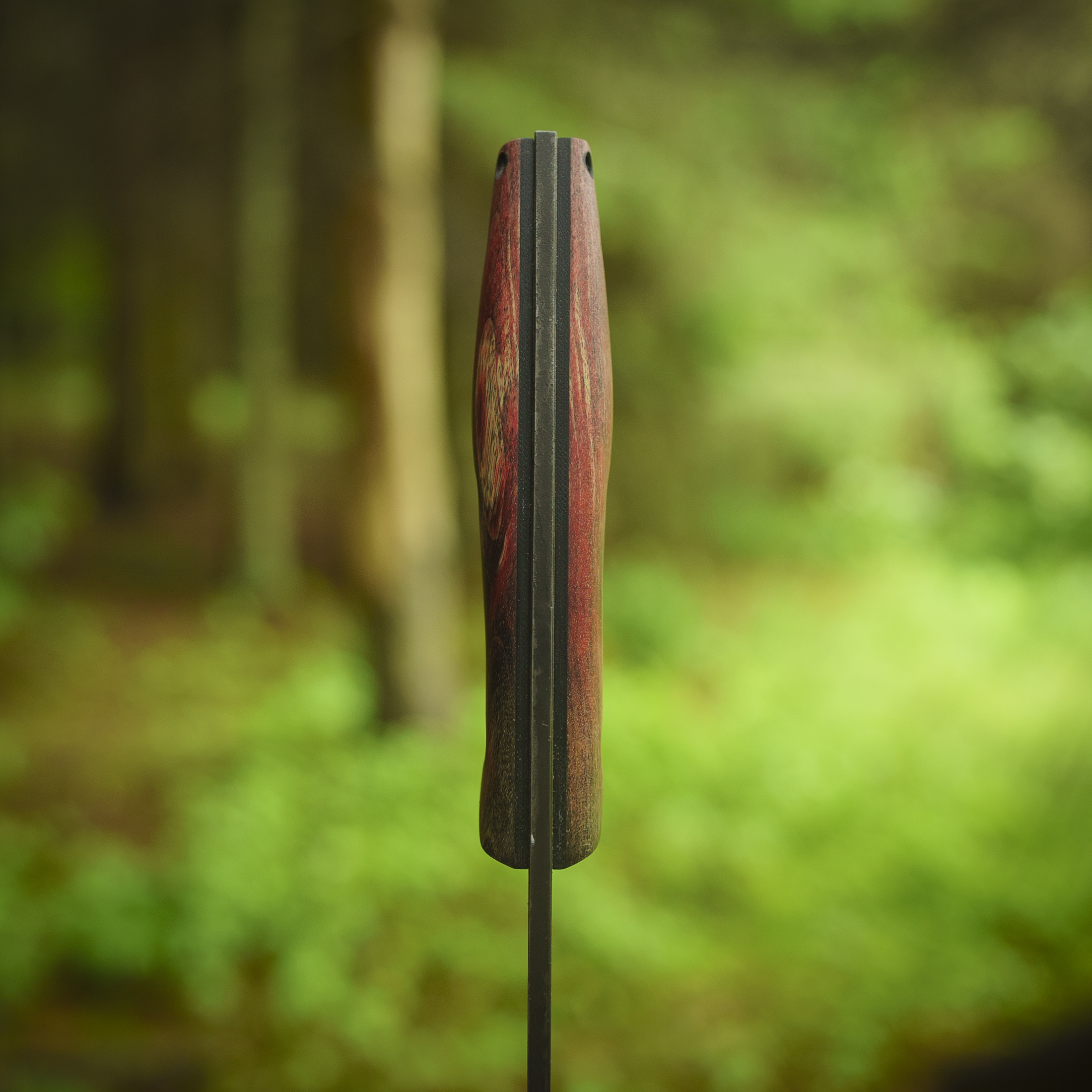- Rękojeść wyprofilowana tak żeby nóż pewnie i wygodnie leżał w dłoni. Drewno stabilizowane.