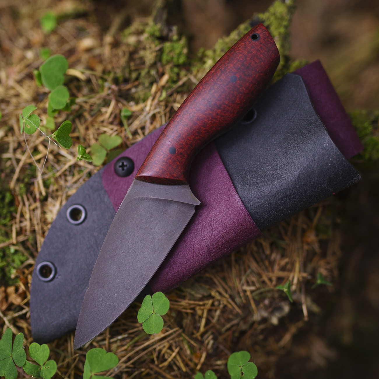 Na rękojeści moich noży znajdziesz głównie drewno – zarówno naturalne jak i stabilizowane. Wykorzystuję również laminaty, głównie micartę. Materiałom na rękojeść noży poświęciłem oddzielny post.