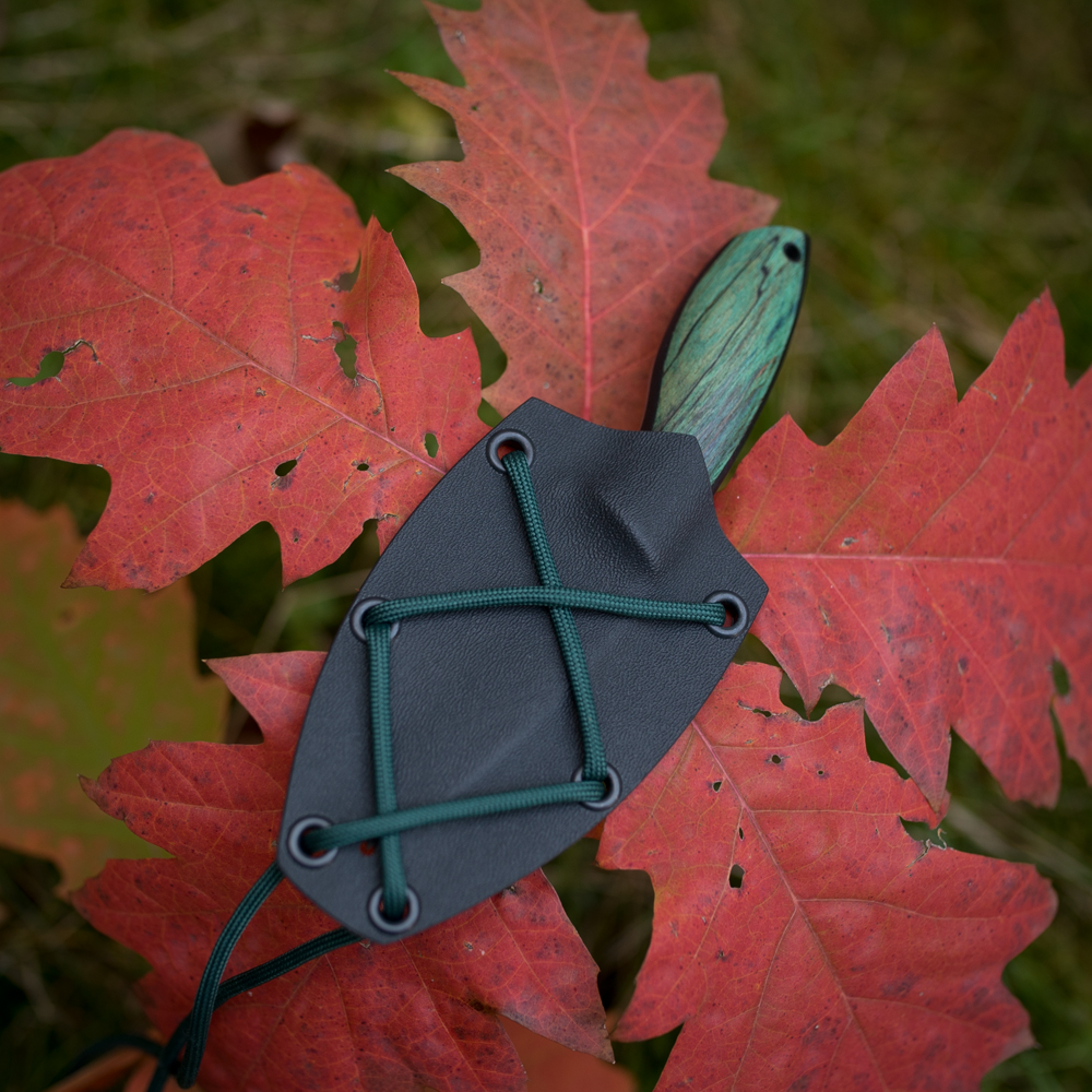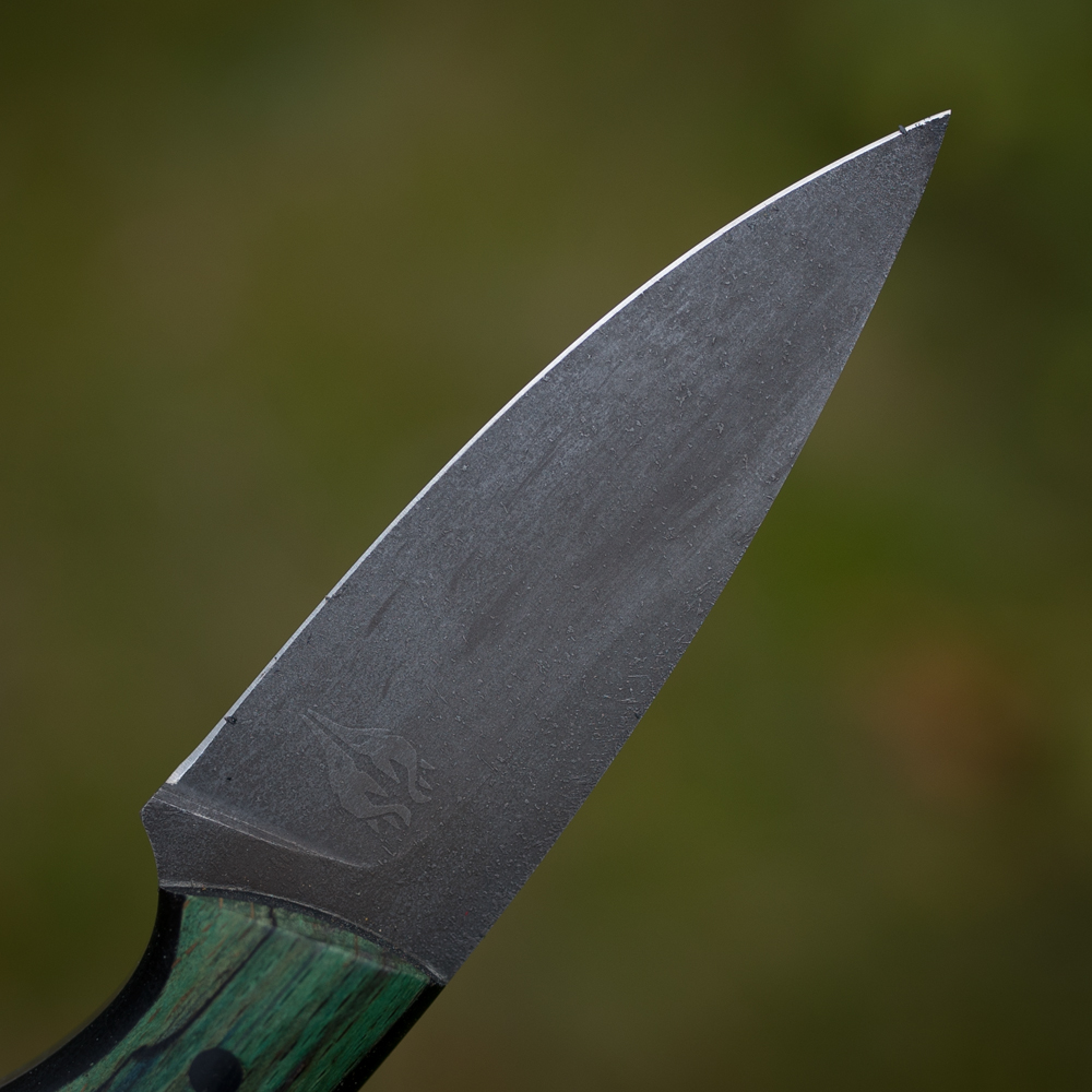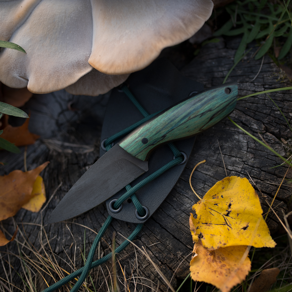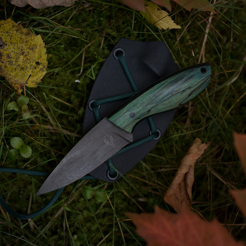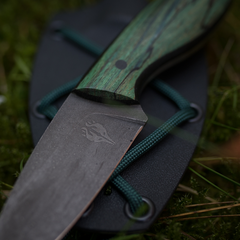 Kłobuk to niewielki nóż do codziennego noszenia i użytku. Jest bardzo uniwersalny, spełnia wszystkie kryteria noża typu neck jak i EDC – można zawiesić go na szyi dzięki czemu mamy do niego natychmiastowy dostęp. Ten rodzaj noszenia noża daje jeszcze jedną zaletę ponieważ możemy przenosić nóż dyskretnie chowając go np. pod koszulę. Dzięki ściąganemu stoperowi można go też przytroczyć do paska, systemu molle itp. Kłobuk ma mnóstwo zastosowań – od pracy w drewnie czy przygotowywaniu posiłków, po otwieranie paczek albo wożenie go w aucie jako awaryjny przecinak do pasów i wybijak szyby w razie wypadku. Stal D2 w połączeniu z pełnym, płaskim szlifem czyni z niego bardzo ostre narzędzie. Trawiona głownia dodatkowo chroni stal przed korozją.