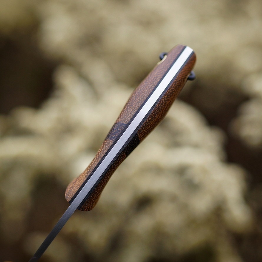 Na rękojeści moich noży znajdziesz głównie drewno – zarówno naturalne jak i stabilizowane. Wykorzystuję również laminaty, głównie micartę. Materiałom na rękojeść noży poświęciłem oddzielny post.