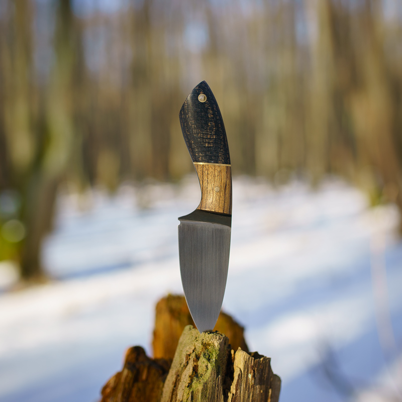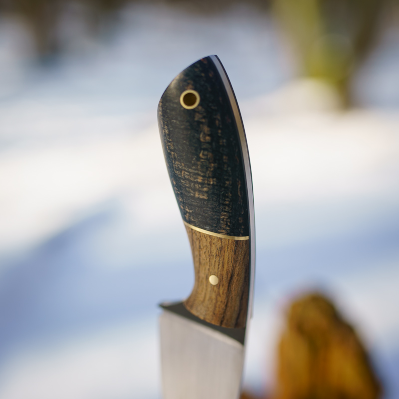 Na rękojeści moich noży znajdziesz głównie drewno – zarówno naturalne jak i stabilizowane. Wykorzystuję również laminaty, głównie micartę. Materiałom na rękojeść noży poświęciłem oddzielny post.