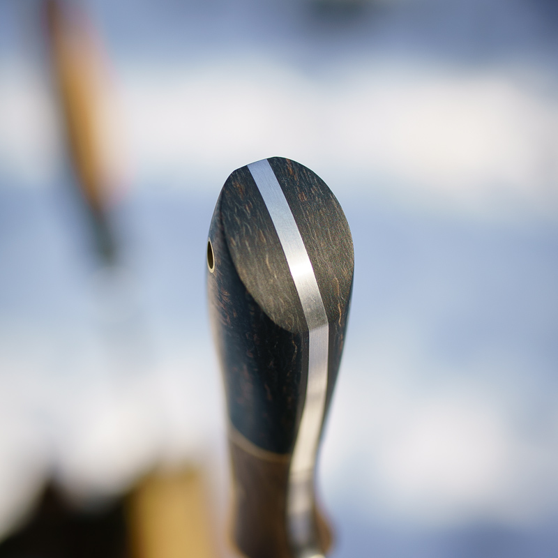 - Rękojeść – Micarta z juty, zebrano, mosiężna przekładka