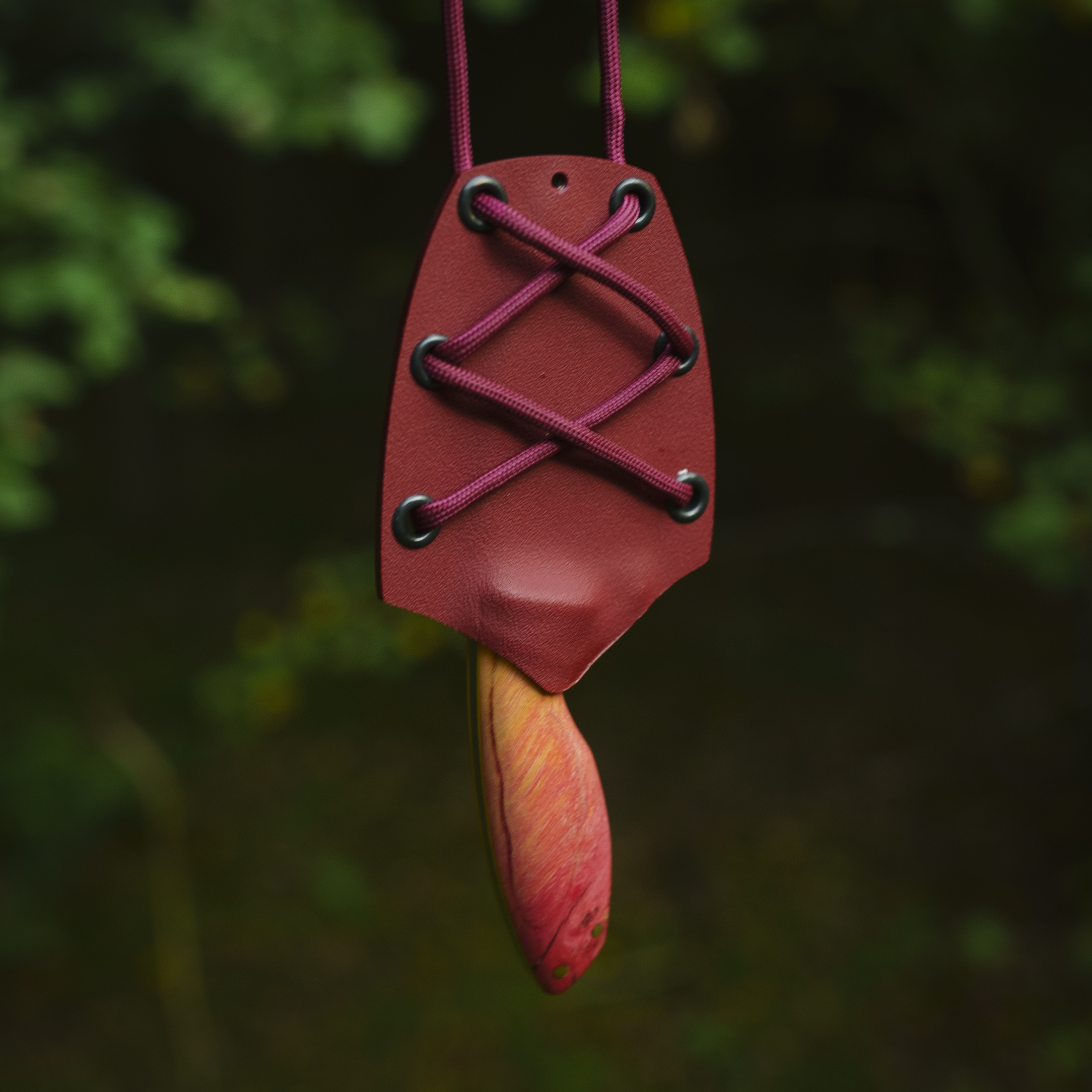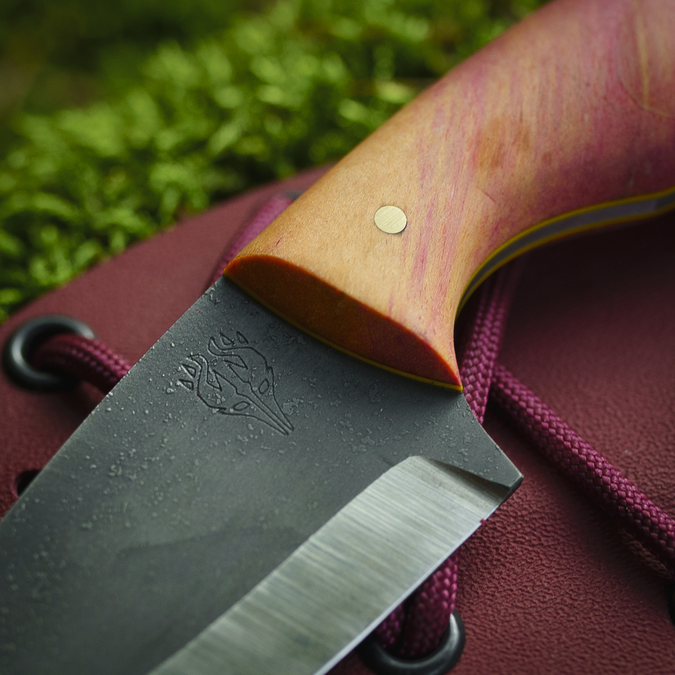 Kłobuk to niewielki nóż do codziennego noszenia i użytku. Jest bardzo uniwersalny, spełnia wszystkie kryteria noża typu neck – można zawiesić go na szyi dzięki czemu mamy do niego natychmiastowy dostęp. Ten rodzaj noszenia noża daje jeszcze jedną zaletę ponieważ możemy przenosić nóż dyskretnie chowając go np. pod koszulę. Ma mnóstwo zastosowań – od pracy w drewnie czy przygotowywaniu posiłków, przez samoobronę, po otwieranie paczek albo wożenie go w aucie jako awaryjny przecinak do pasów i wybijak szyby w razie wypadku. Stal D2 w połączeniu z pełnym, płaskim szlifem czyni z niego bardzo ostre narzędzie.
