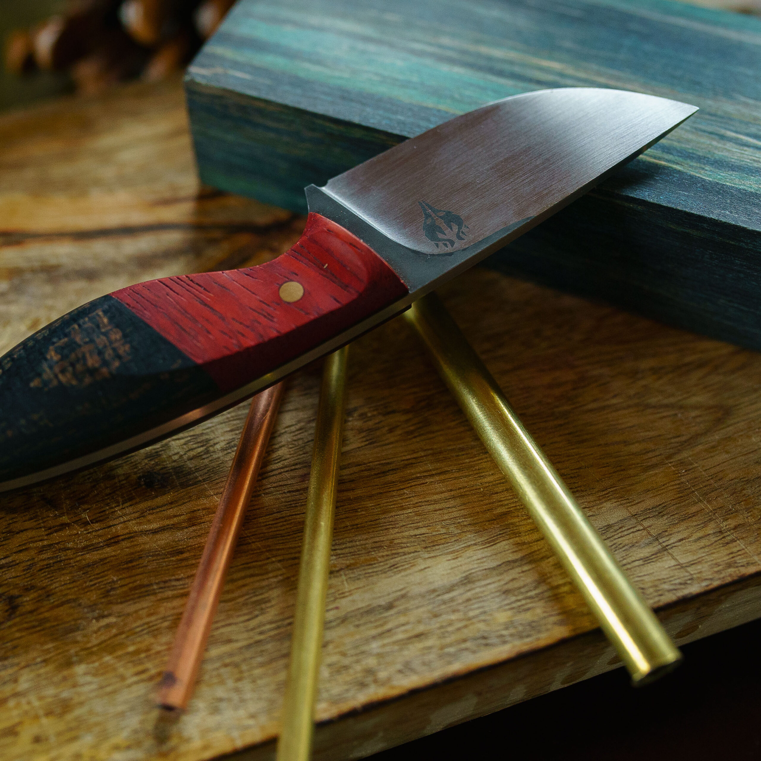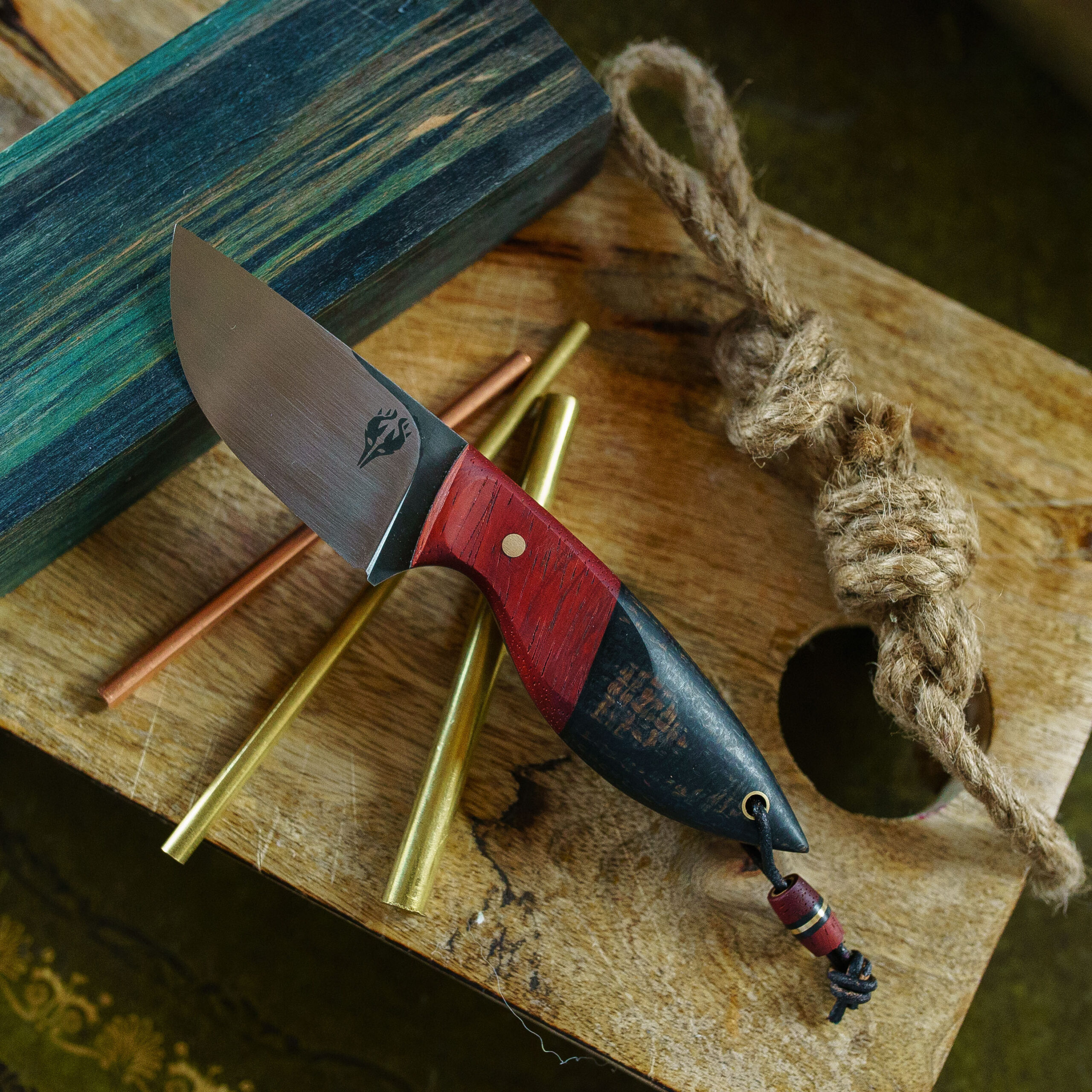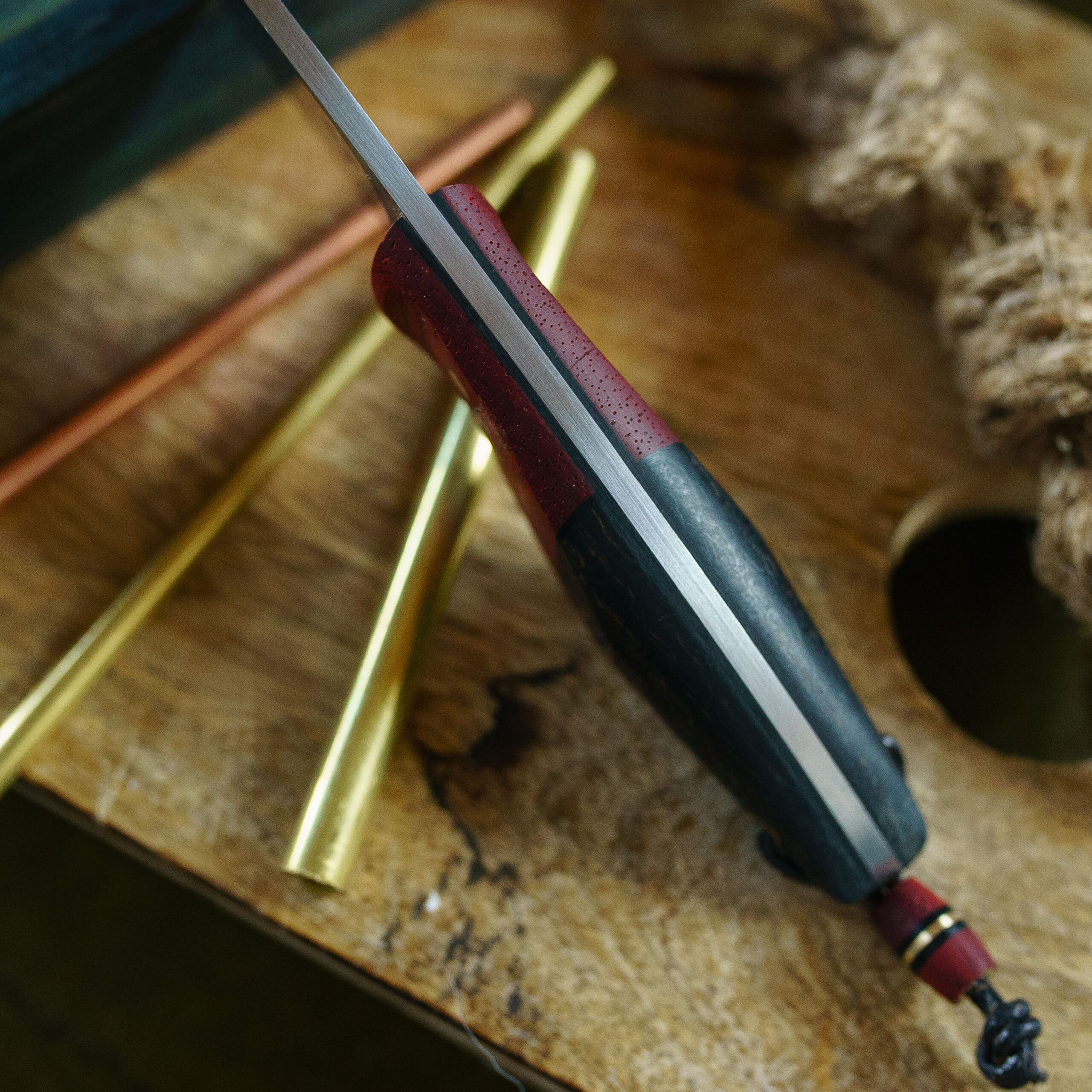 Na rękojeści moich noży znajdziesz głównie drewno – zarówno naturalne jak i stabilizowane. Wykorzystuję również laminaty, głównie micartę. Materiałom na rękojeść noży poświęciłem oddzielny post.