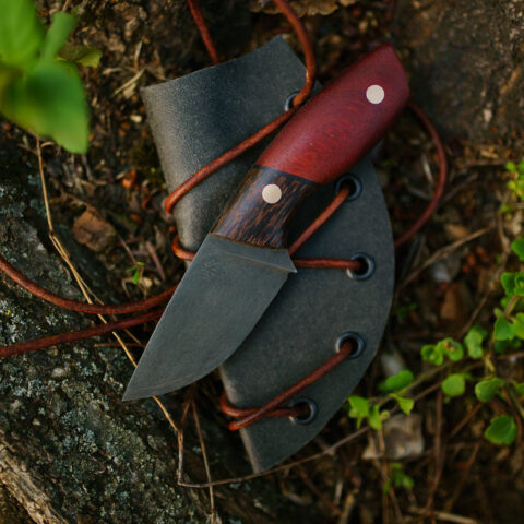 Na rękojeści moich noży znajdziesz głównie drewno – zarówno naturalne jak i stabilizowane. Wykorzystuję również laminaty, głównie micartę. Materiałom na rękojeść noży poświęciłem oddzielny post.