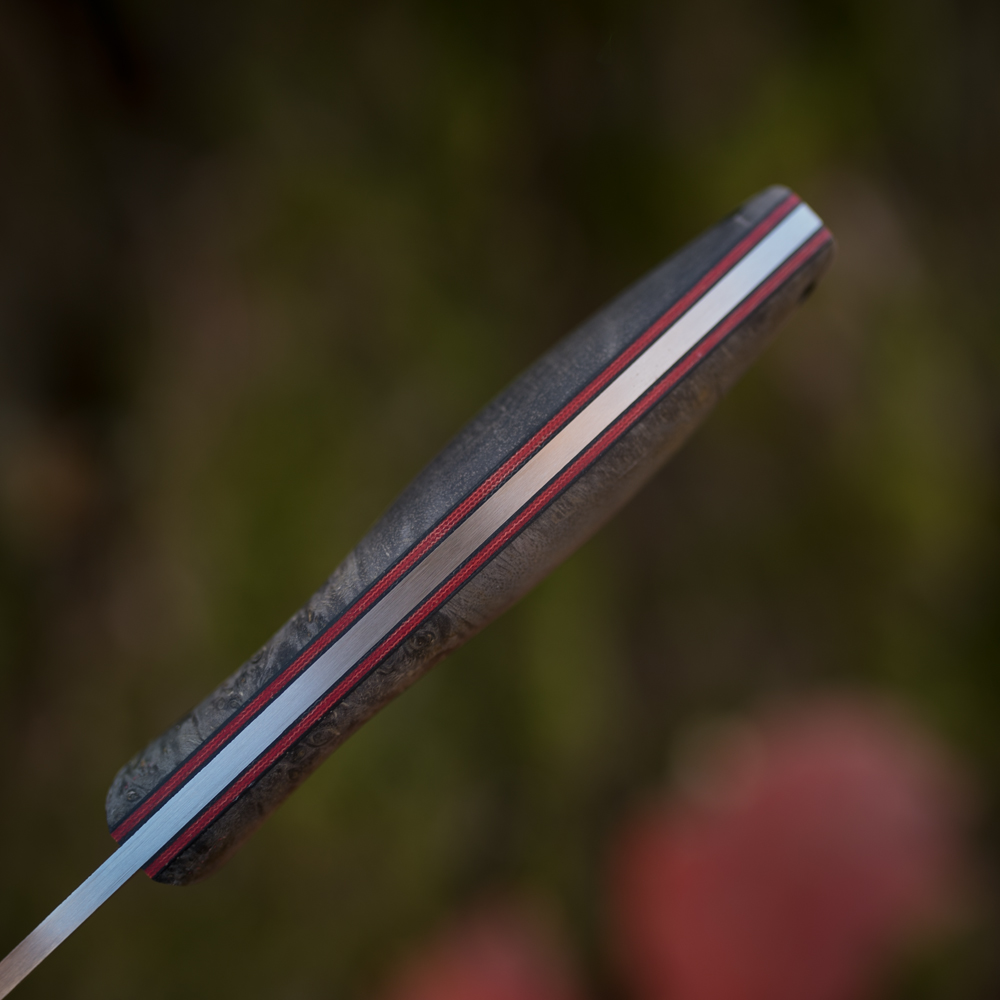 Na rękojeści moich noży znajdziesz głównie drewno – zarówno naturalne jak i stabilizowane. Wykorzystuję również laminaty, głównie micartę. Materiałom na rękojeść noży poświęciłem oddzielny post.