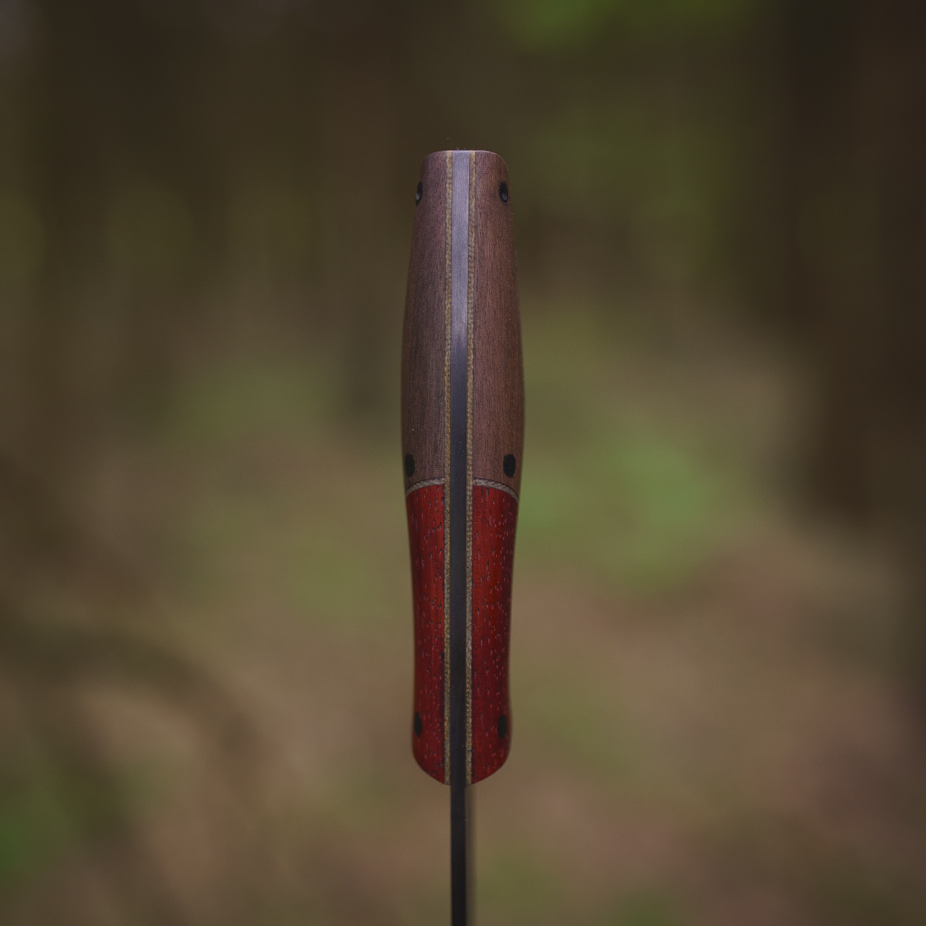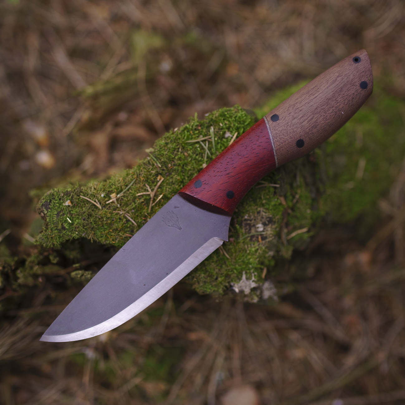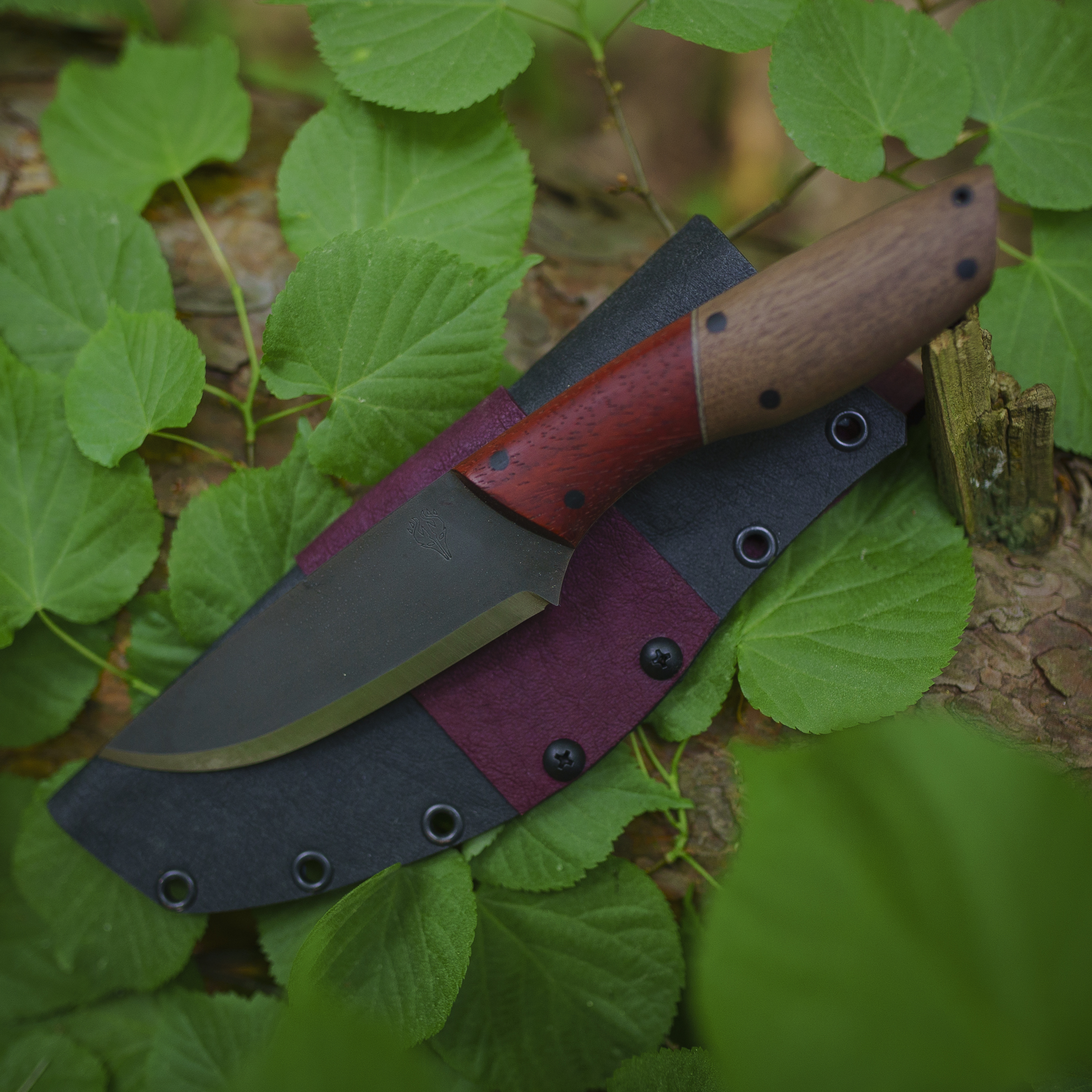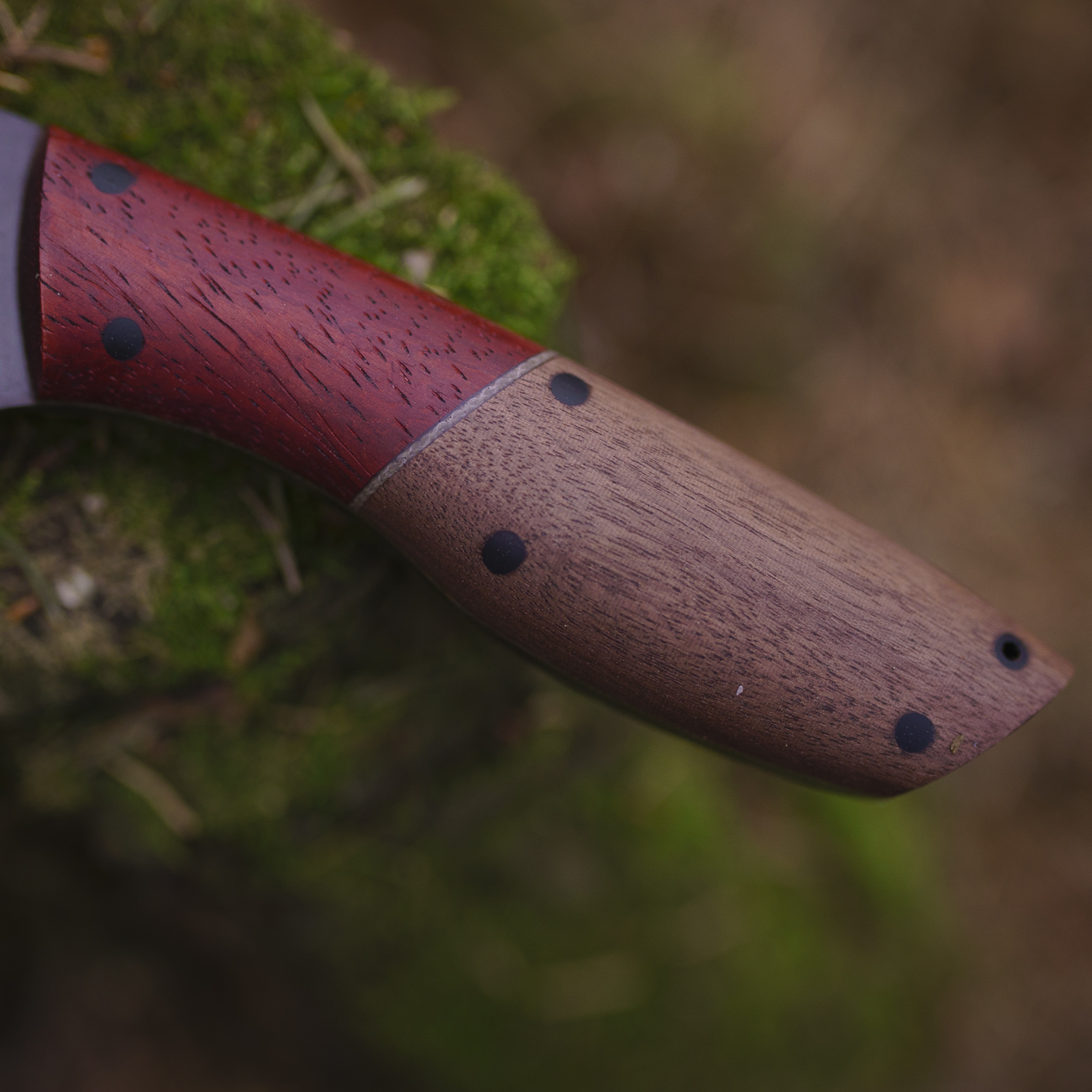 Na rękojeści moich noży znajdziesz głównie drewno – zarówno naturalne jak i stabilizowane. Wykorzystuję również laminaty, głównie micartę. Materiałom na rękojeść noży poświęciłem oddzielny post.